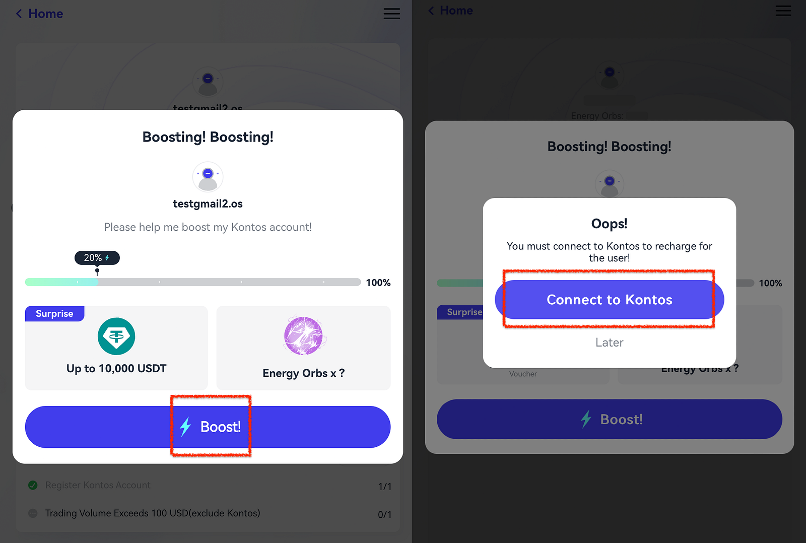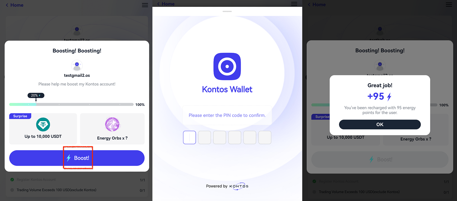 If you already have a Kontos account, you can click “Boost” to assist the other party. Both parties will receive energy points as a result.